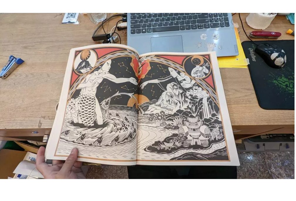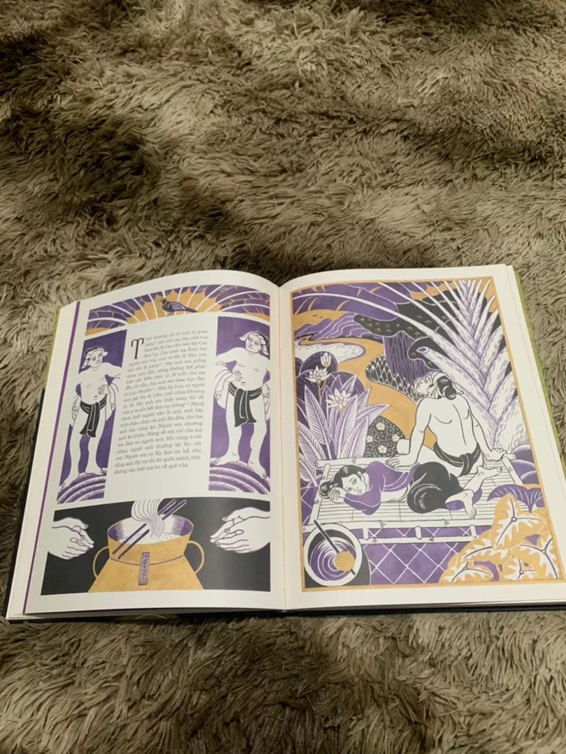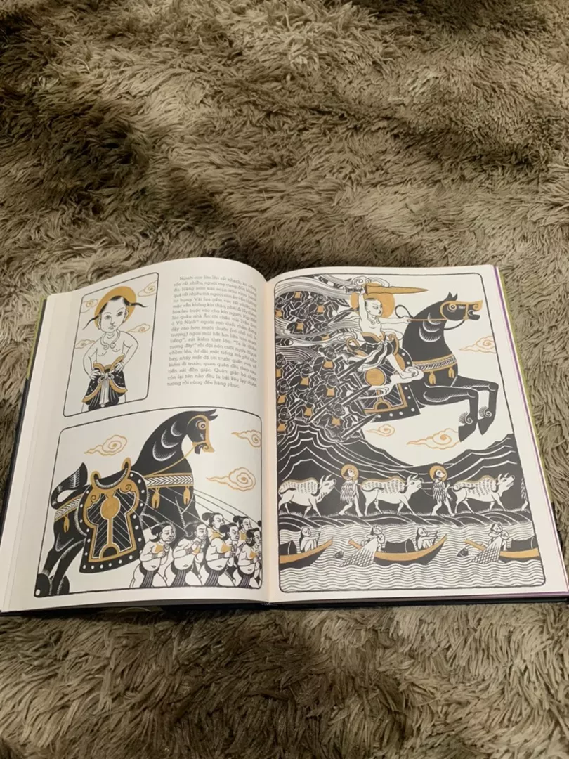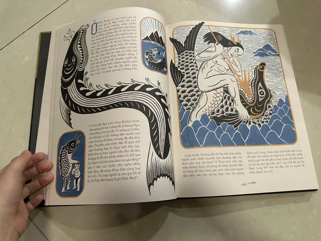 The more than 200 illustrations in Lĩnh Nam Chích Quái were all hand-drawn, meticulously crafted to imitate the style of traditional folk woodblock prints. Each illustration consists of two versions: one in black ink and one or two in color.